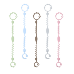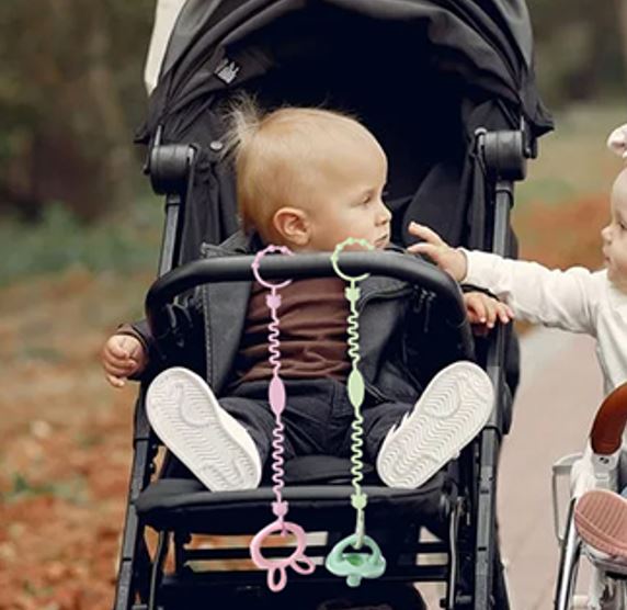 Je kent het vast wel, die kleine gooit alles uit de wagen, of laat het vallen. Speeltje vies en de kleine verdrietig. Met deze bandjes valt dit te voorkomen. Bind eenvoudig het speeltje, de beker, de speen of andere spullen vast aan de kinderwagen, kinderstoel of autostoel op de lengte naar keuze. De bandjes zijn gemaakt van silicone, dit maakt ze bijtveilig. De bandjes zijn 50cm lang.